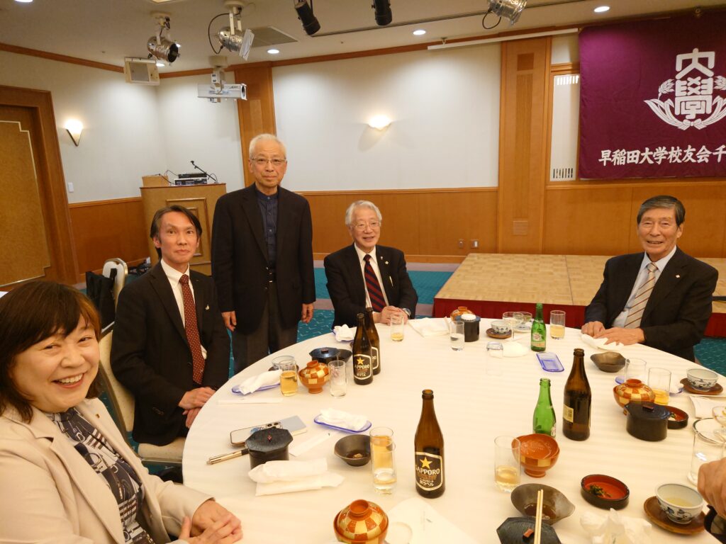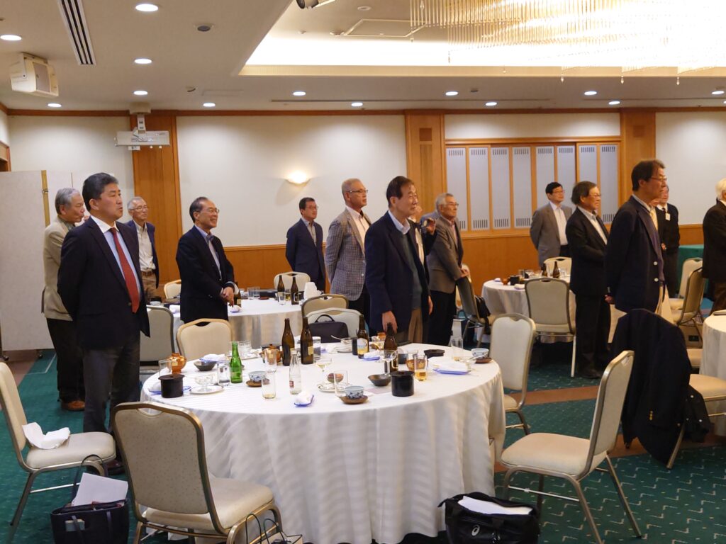 会議終了後昼食、懇親会となりました。乾杯のご挨拶は校友会本部からの来賓、山口事務局長にお願いしました。