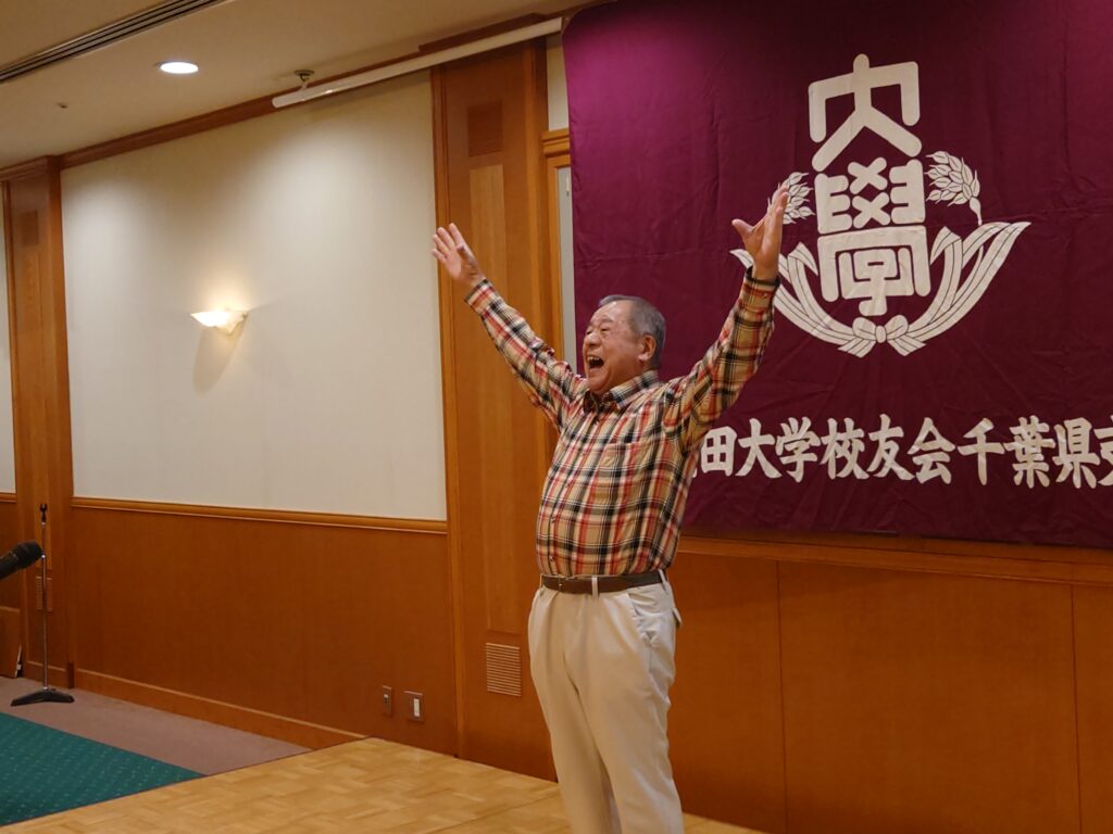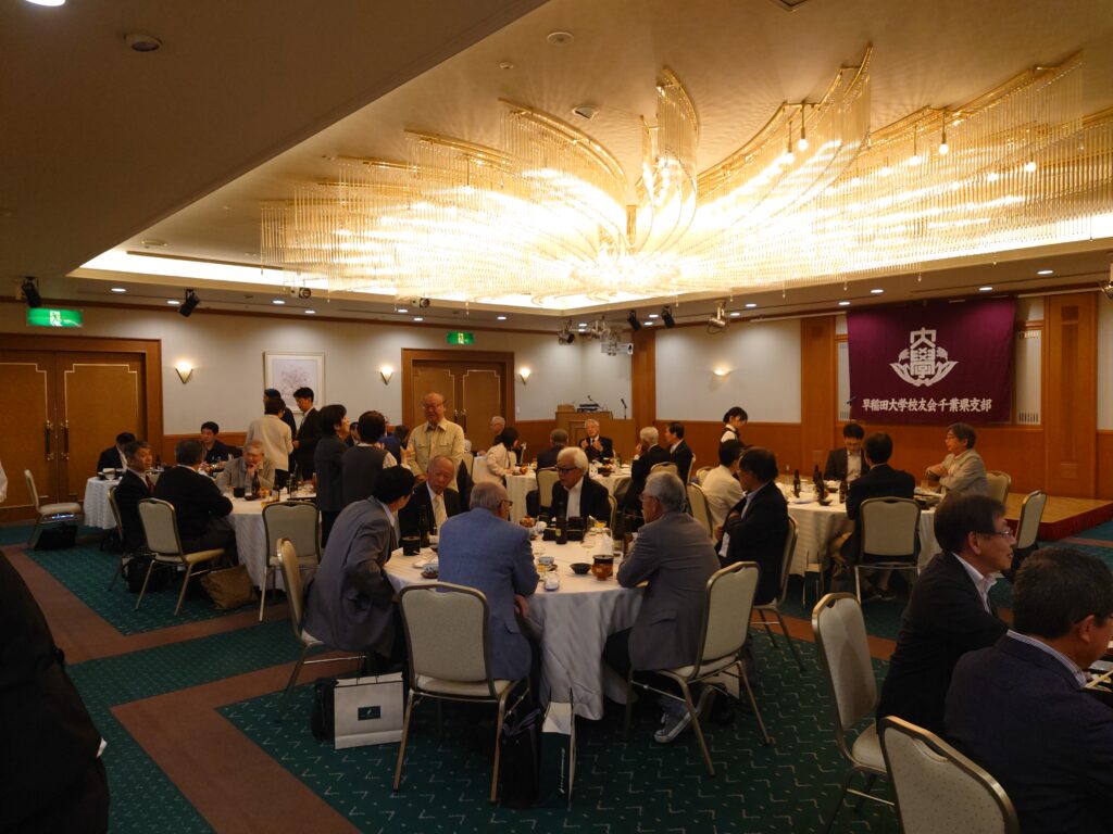 報告事項としては、秋の県稲門祭について今年の実行委員長である船橋稲門会の三村会長から概要の説明がありました。11月29日、昨年と同じ会場東京ベイ幕張ホール。