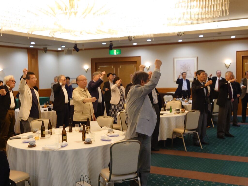 しばし歓談の後、閉めは柏稲門会田中会長指揮のもと都の西北1番の斉唱となりました。